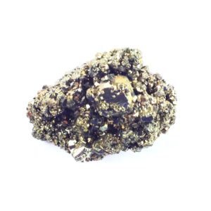 The mineral pyrite, or iron pyrite, is an iron sulfide with metallic luster and pale brass-yellow hue. It earned the nickname fool’s gold because of its superficial resemblance to gold. Pyrite is the most common of the sulfide minerals. Pyrite is usually found associated with other sulfides or oxides in quartz veins, sedimentary rock, and metamorphic rock, as well as in coal beds, and as a replacement mineral in fossils.