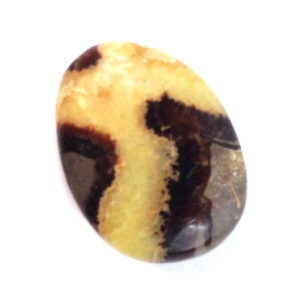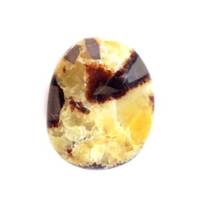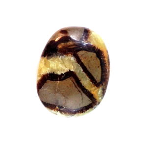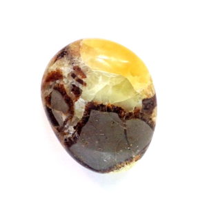 Septarian stones were formed around 50 million years ago by decomposed sea life (killed from frequently volcanic eruptions), which high levels of sediments accumulated around carcasses and shells, forming nodules or concretion. When sea levels lower down, the nodules dried out suffering dehydration, shrinking its size and cracking into patterns and layers inside the septarian concretion. The cracks and cavities are called “septaire” which means “septum” or partition in Latin language. Septarian is a grounding stone that improves your psychic abilities and is also used to relieve muscle pain.