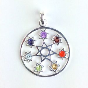 Sterling Silver Chakra Pendant (925 Silver) with 7 gemstones: