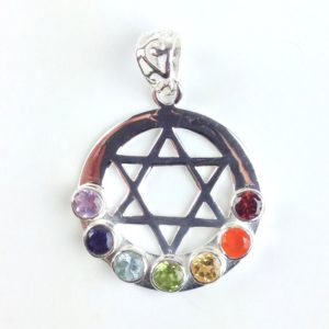 Sterling Silver Chakra Pendant (925 Silver) with 7 gemstones: